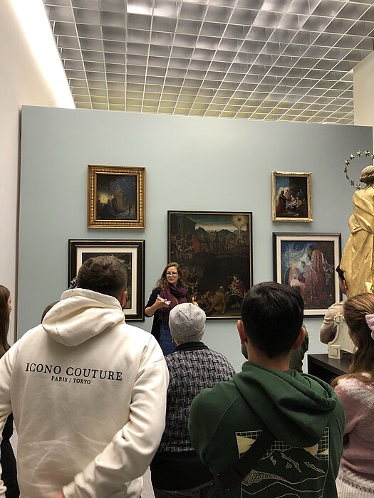 Ab 2026 können Sprachkursteilnehmende und andere Migrantengruppen kostenlose Führungen im Museum am Dom, im Kulturspeicher und im Museum auf der Festung in Anspruch nehmen. Termine dafür stehen bereits fest. Noch im Dezember 2025 konnte das Programm für drei Sprachkurse an der Kolping Akademie beginnen. Christine Busch von der Diözese Würzburg (Bischöfliches Ordinariat, Hauptabteilung Bildung und Kultur) führte in die Ausstellungen im Museum am Dom ein, beantwortete die vielen Fragen und vermittelte auf kurzweilige Art in verständlicher Sprache anhand christlicher Kunst die Techniken und Botschaften der Kunstobjekte. Danach war Gelegenheit, sich selbst noch die Bilder und Skulpturen bei einem kleinen Rundgang anzusehen. Die Teilnehmenden zeigten sich begeistert und Schwellenängste vor dem Betreten solcher Kulturräume als „Neuland“ wurden abgebaut. Alle werden gerne mit Familie und Freunden wieder ein Museum besuchen.